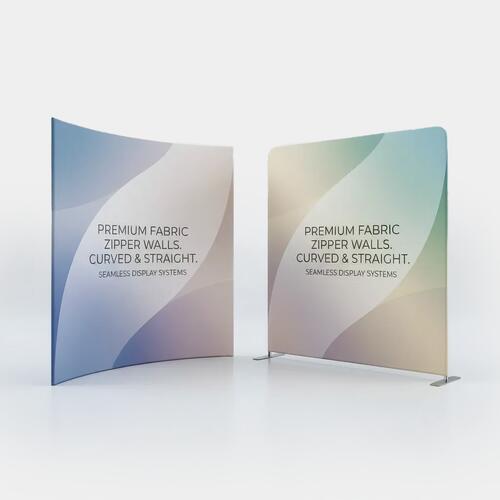 Für die Auswahl der geeigneten Messewandform sollten Sie Einsatzgebiet, Ausstellungsfläche und Standort beispielsweise in einer Ecke oder einer geraden Fläche vor einer Wand oder Fensterfront Ihres Messestands mit in die Entscheidung einbeziehen. Das Faltdisplay ist eine gerade Messewand mit einem faltbaren Messesystem und einer Textilwand, die mit Klettverschluss befestigt wird. Unsere Zipper-Wall ist als gerade und gebogene Wand verfügbar und besteht aus einem zusammensteckbaren Aluminium-Gestänge, das mit einer Textilwand bespannt wird. Diese kann seitlich mit einem Reißverschluss geschlossen und geöffnet werden. Unsere Pop-up-Displays bestehen aus mehreren Druckbahnen und einem klappbaren Gittersystem aus mattschwarzem Aluminium mit magnetischen Verriegelungen. Der Aufbau dieser Messewand geht einfach ohne zusätzliches Werkzeug.