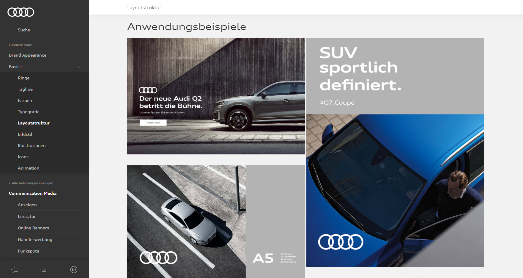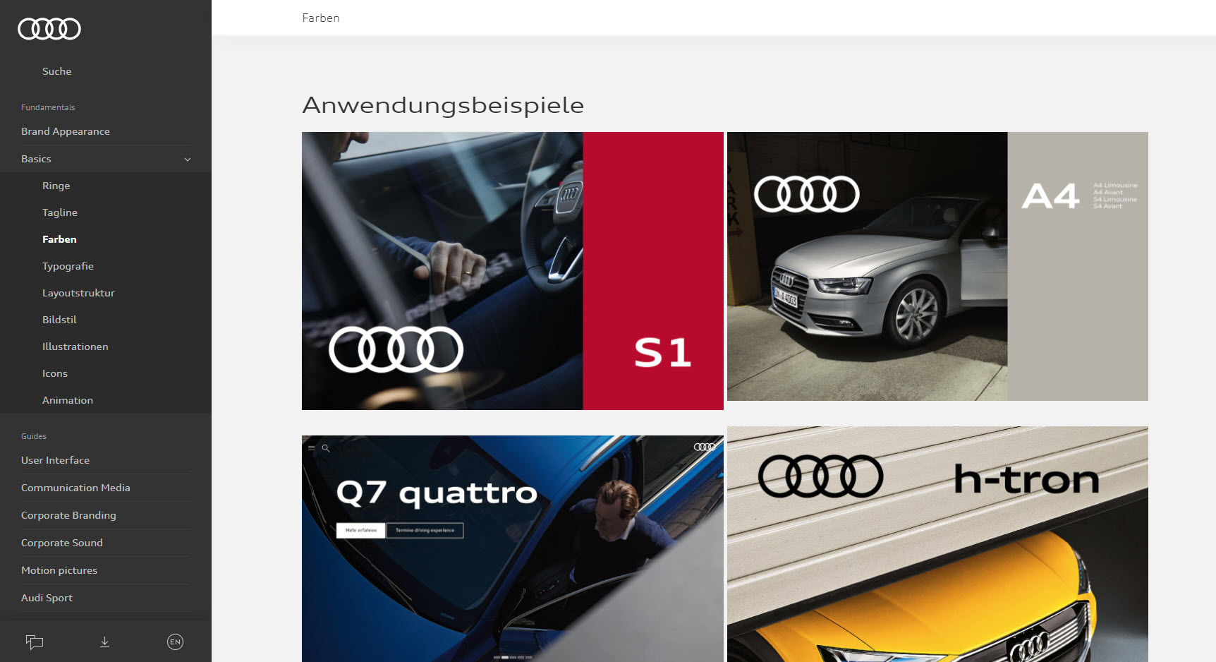 Auch der Autohersteller Audi nutzt die Online-Dokumentation, um seinen Markenauftritt zu wahren.