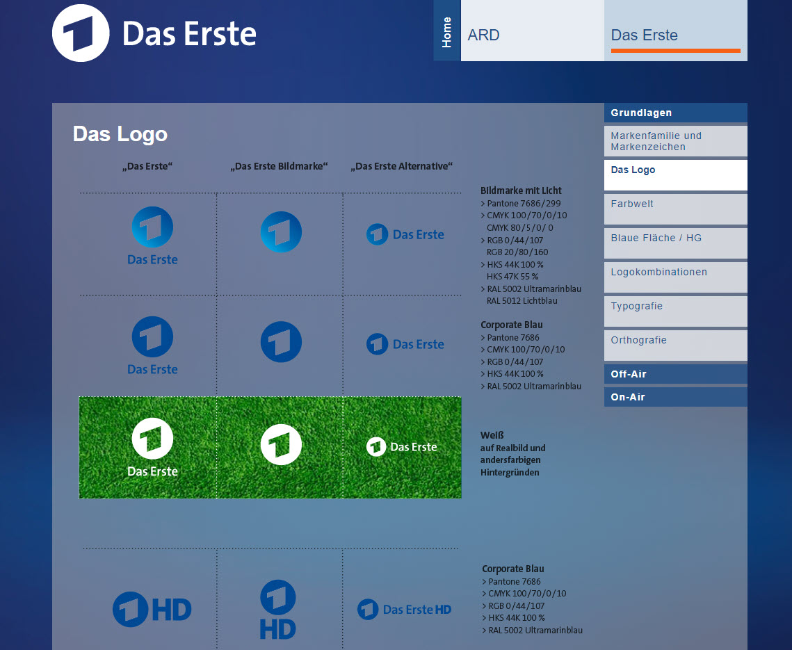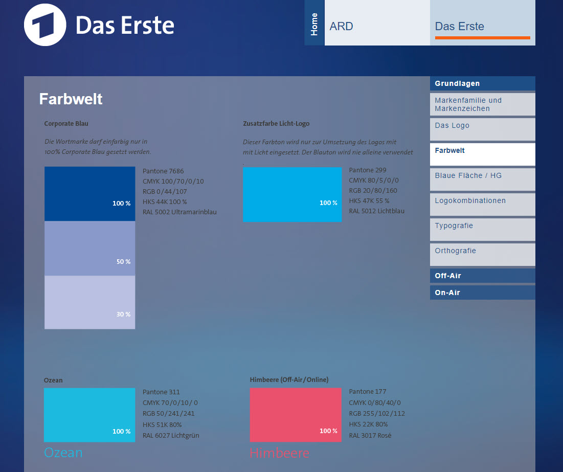Der öffentlich-rechtliche Fernsehsender „Das Erste“ hält sein Corporate Design beispielsweise wie folgt fest: