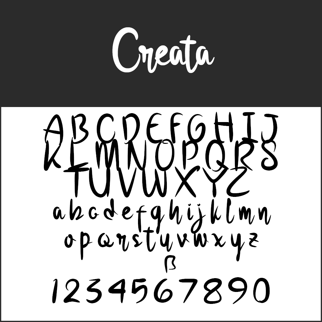 - nur private Nutzung frei; kommerziell: https://www.glyphstyle.net/creata/
