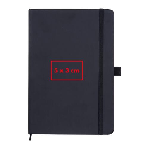 - A5 Notizbuch mit PU-Einband, Lesezeichen, Verschlussband, Kugelschreiberschlaufe und 120 linierten Seiten aus Steinpapier