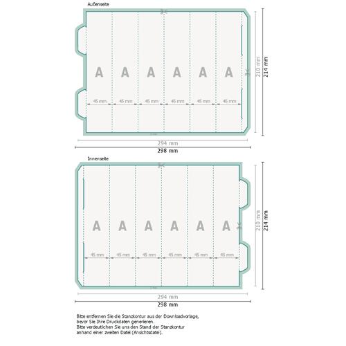 - Lieferung: fertig gestanzt/gerillt und plano liegend