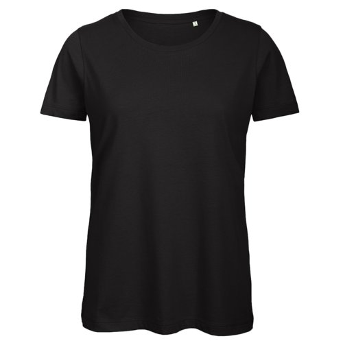 Schwarzes Damen T-Shirt aus Bio-Baumwolle mit kurzen Ärmeln.