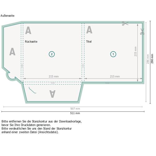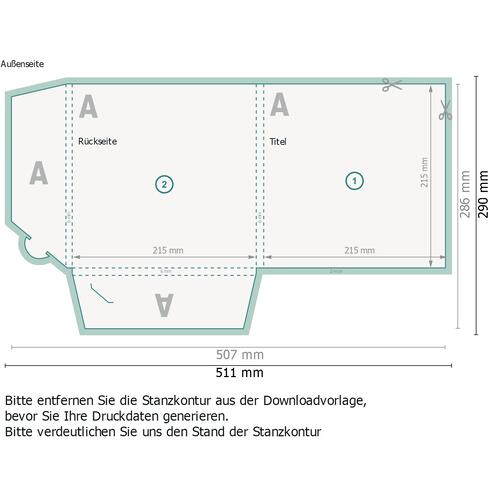 - Bitte entfernen Sie die Stanzkontur aus der Downloadvorlage, bevor Sie Ihre Druckdaten generieren.