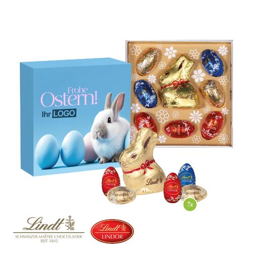 - Schokoladenmischung von Lindt (ca. 42 g) bestehend aus 7 Stück Lindt-Ostereiern bunt gemischt und einem Lindt-Goldhasen (10 g)