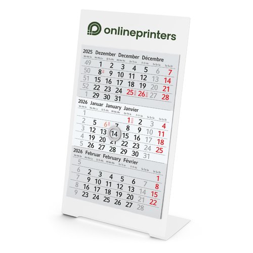 - Layout: Abbildung von 3 Monaten mit abreißbaren Blättern