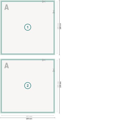 - Datenformat (inkl. 2 mm Beschnitt): 10,9 x 10,9 cm
