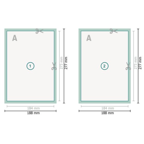 • umlaufend 2 mm Beschnitt anlegen, wichtige Informationen mit mind. 4 mm Abstand zum Endformat