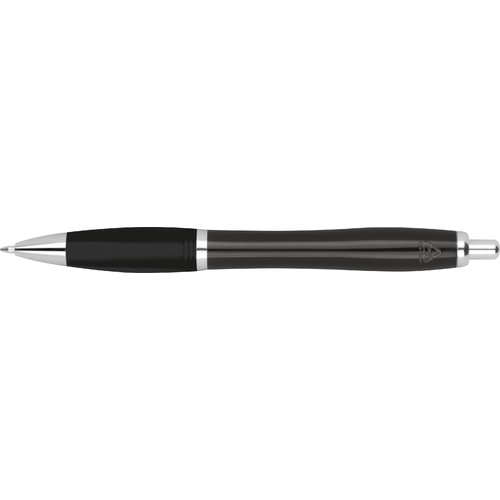 Schwarzer ABS-Kugelschreiber mit Druckmechanismus.