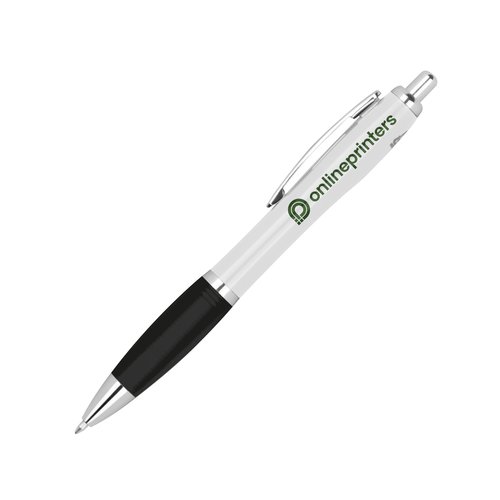 Weißer ABS-Kugelschreiber mit Druckknopfmechanik.