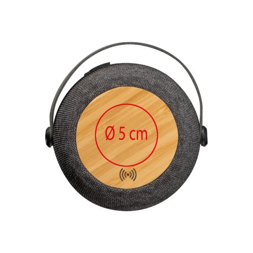 - Bluetooth-Lautsprecher (5 Watt, Akku: 1200 mAh) aus recyceltem PET mit Induktionsladefläche (15 Watt) aus Bambus inkl. USB-C Ladekabel (ca. 50 cm)