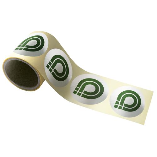 - Bei Wahl ohne Bahnteilung erhalten Sie eine Rolle von 33 cm und Innendurchmesser von 7,6 cm, hier werden die Aufkleber nebeneinander platziert
