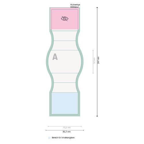 - Die gesetzlichen Pflichtangaben (Inhaltsangaben, Mindesthaltbarkeitsdatum, Hersteller/Inverkehrbringer etc.) werden im Rahmen des Produktionsprozesses automatisch eingefügt. Bitte beachten Sie die gekennzeichneten Bereiche im Datenblatt sowie in der Druckvorlage
