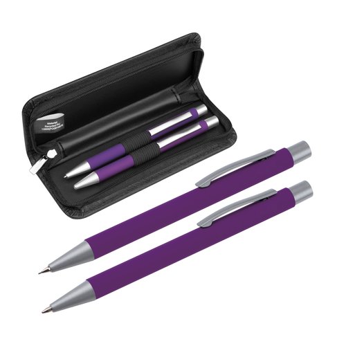 - Schreibset bestehend aus einem blauschreibenden Metall-Kugelschreiber mit einer Kunststoffgroßraummine und einem passenden Druckbleistift mit zwei Bleistiftminen (0,5 mm)