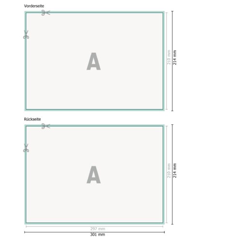 - Datenformat (inkl. 2 mm Beschnitt): 30,1 x 21,4 cm