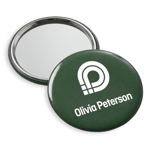 • Buttons aus Blech mit integriertem Spiegel aus Echtglas auf der Rückseite