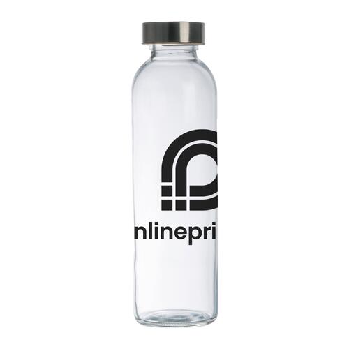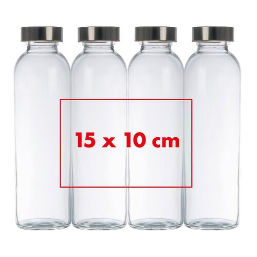 • Trinkflasche aus Glas mit einem Fassungsvolumen von 600 ml und einem Edelstahldeckel