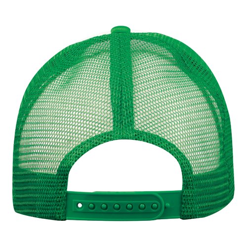 - 5 Panel Trucker Cap mit gepolsterter Stirnfront und verstellbaren Kunststoffverschluss am Hinterkopf