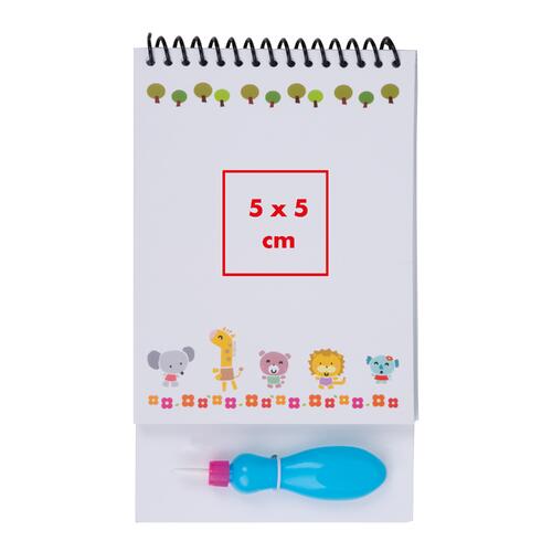 - Einfach Wasser in den Pinsel einfüllen und auf einer der vier Seiten mit den lustigen Tiermotiven losmalen
