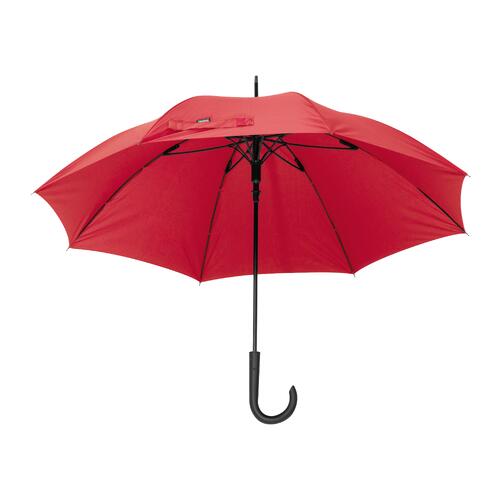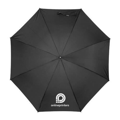 - Automatiksturmschirm (winddicht) mit aus 190T recyceltem Polyester mit gebogenem Kunststoffgriff (ABS) und Metallspitzen